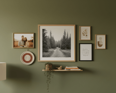 The Gallery Wall: If you have many smaller pieces (postcards, photos, sketches), arrange them in a gallery wall. Keep the frames consistent (all black, or all wood) to maintain a sense of order.