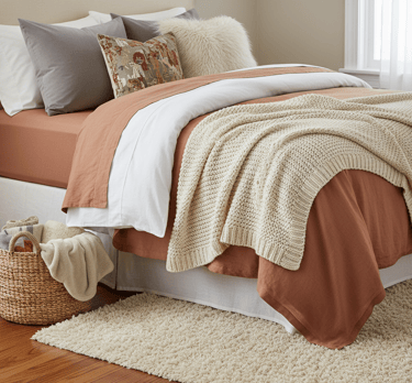 The Middle: Add a chunky knit throw blanket draped casually over the foot of the bed. This provides immediate visual weight.