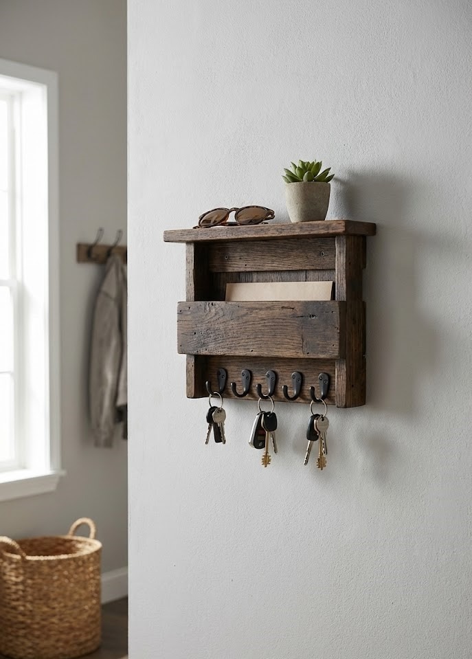 We have all been there—running late and frantically searching for keys. This project solves a daily headache while adding a rustic or industrial charm to your foyer. It serves as both a functional organizer and a welcoming piece of wall decor.
