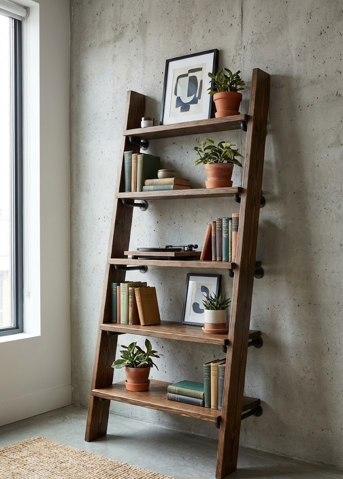 7. Industrial Ladder Bookshelf