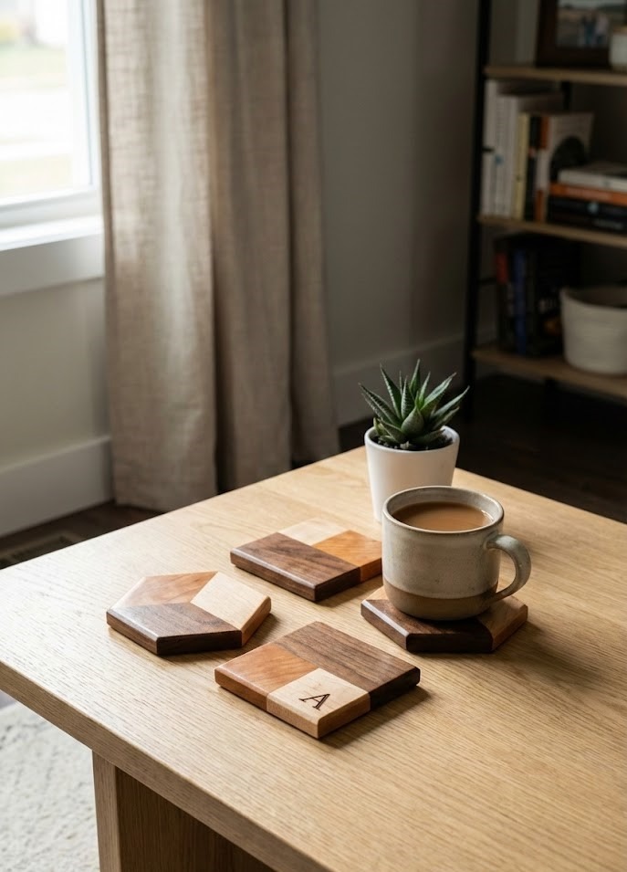 If you have never touched a saw before, start here. Coasters are the ultimate low-risk, high-reward project. They protect your furniture, look sophisticated, and allow you to experiment with finishing techniques without committing to a massive piece of furniture.