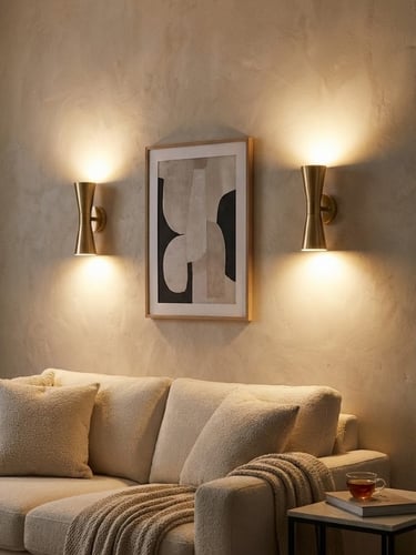 Styling Tip: Install sconces on either side of a sofa, a mirror, or a piece of art to create symmetry. finishes like brushed brass, matte black, or polished nickel can act as the "jewelry" of the room.