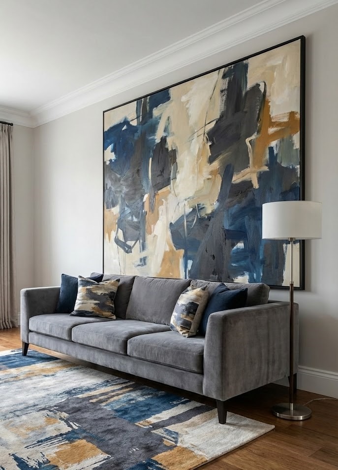 Sometimes, less is more. The "one big piece" approach is perfect for minimalists or those who find gallery walls too busy. A substantial piece of artwork serves as a powerful focal point, anchoring the furniture below it and dictating the color palette for your cushions and rugs.