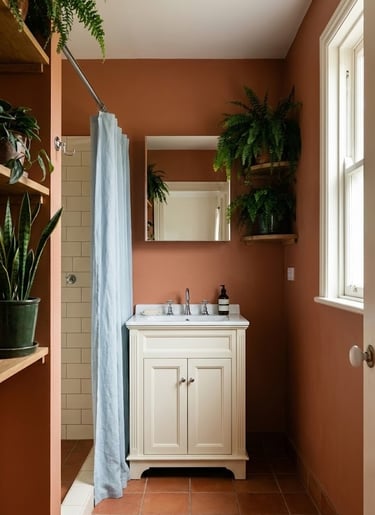 Design Tip: Balance this warm tone with cool accents, like a pale blue shower curtain or silver fixtures, to keep the room feeling fresh.