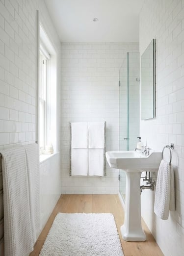 The Clean Factor: Nothing feels fresher than a sparkling white bathroom.