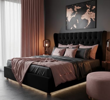 Velvet everything—that’s the mood we’re going for here. Black velvet headboards, pink velvet ottomans, maybe even velvet curtains if you’re feeling extra. This texture adds instant luxury to any space.