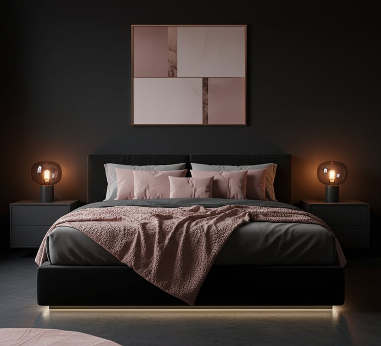 The key here is layering textures. Combine smooth matte surfaces with soft, flowing fabrics. Add tons of pillows in varying shades of pink, some sheer canopy draping, and maybe even some dried flowers. The matte black prevents it from feeling too saccharine sweet. Lighting is crucial here—think warm, dimmable lights to create a cocoon effect.