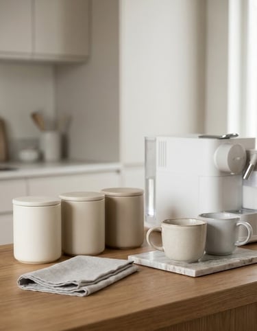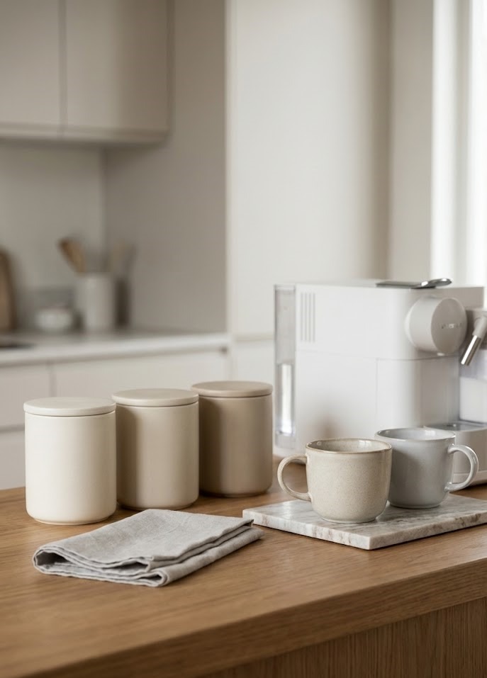 You can never go wrong with a neutral palette. Layer shades of cream, beige, and soft gray for a sophisticated look that transcends trends. Use ceramic canisters and linen napkins to add subtle texture. This style is calming and blends seamlessly with almost any kitchen design.