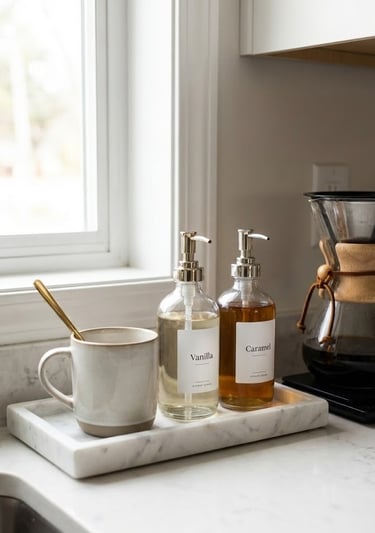 You don't need a $2,000 machine to feel fancy. Elevate your station with affordable touches like a gold stirring spoon, a small marble tray, or uniform glass syrup dispensers with custom labels. These small details make the experience feel high-end without the price tag.