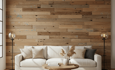 For instant character and rustic charm, you can't beat reclaimed wood. Planks sourced from old barns, pallets, or shipping crates bring history and texture to a space. The wood can be applied vertically or horizontally.