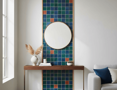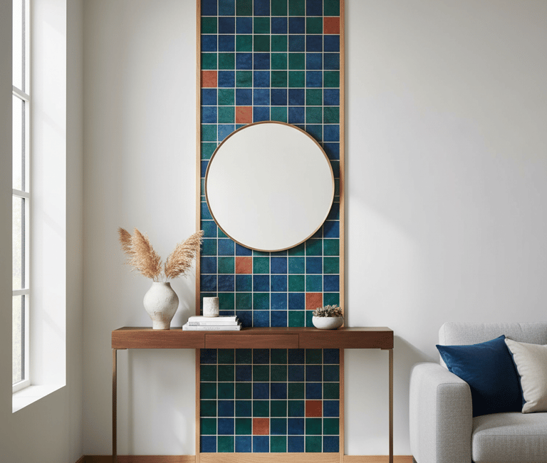 Tile isn't just for kitchens and bathrooms. Using a strip of beautiful, handcrafted tile—like colorful Zellige, terracotta, or hand-painted ceramic—can create a stunning accent. This works well as a vertical strip behind a console table or flanking a fireplace. Because you're only tiling a small area, you can often splurge on higher-end artisan tiles.