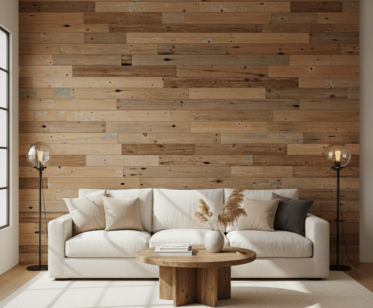 Tip: Install the planks with a combination of panel adhesive and finishing nails. Leaving a tiny, inconsistent gap (e.g., the width of a coin) between some planks can create shadow lines that enhance the wall's texture.