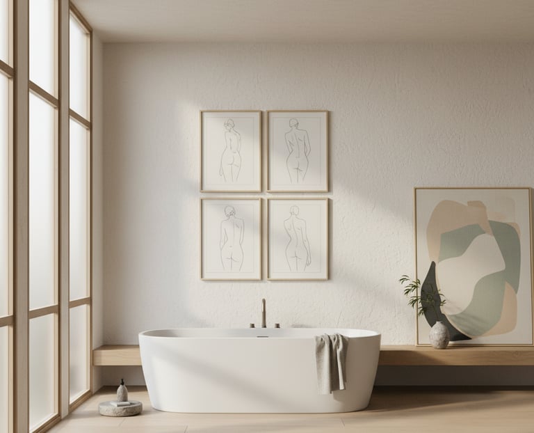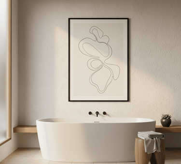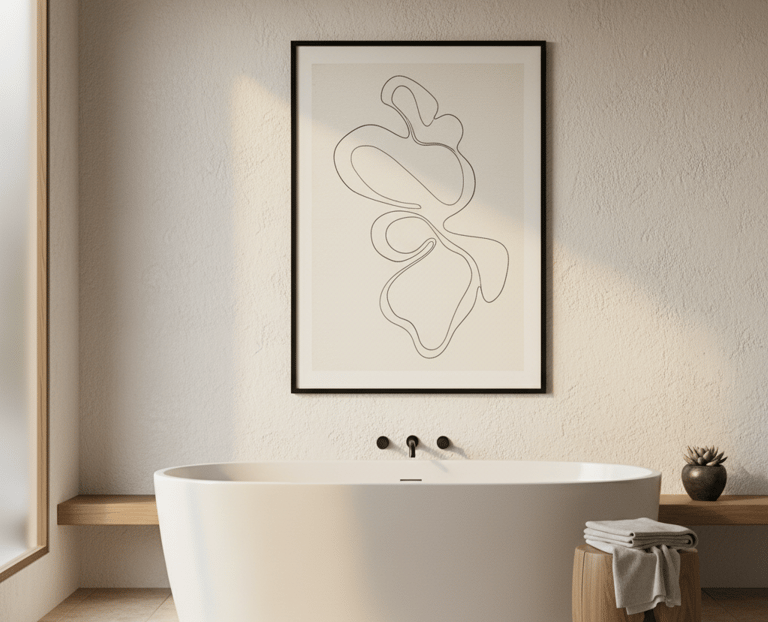 For those who prefer a "Zen" or spa-like atmosphere, visual clutter is the enemy. Highlight a serene, uncluttered room with a single, small framed print placed just above a freestanding tub. A simple, single-line drawing of a figure on textured paper offers a focal point that doesn't overwhelm the clean lines of the architecture.