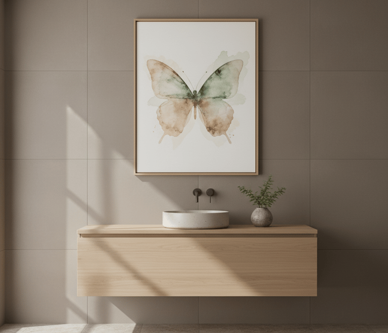 Color Theory: Pick art that contains at least one shade found in your tiles or paint. This makes the art feel like it was commissioned for the space.