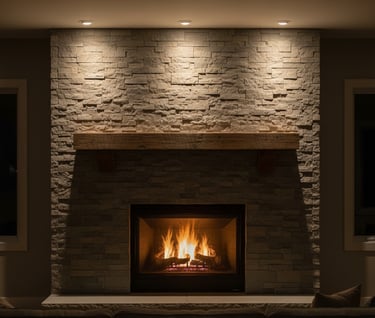 Many fireplaces feel dark and heavy in the evenings. Installing dedicated lighting can highlight the new texture or mantel. Consider installing two or three small recessed LED downlights (warm white, 3000K) in the ceiling about 24 inches (60cm) out from the wall. Angled correctly, they will "wash" the fireplace in a soft, ambient glow.