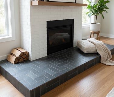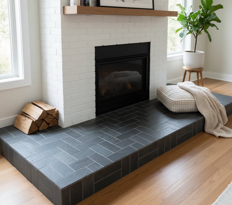 An undersized hearth can make a fireplace look small and unfinished. Extending the hearth (the floor-level area) grounds the entire feature. Large-format slate, granite, or porcelain tiles are perfect for this. Laying them in a classic herringbone or stacked pattern can add subtle design interest and create a more intentional, functional "zone."