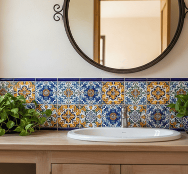 A hand-painted ceramic or Talavera sink can serve as a stunning artistic centerpiece in your Spanish bathroom. These sinks showcase incredible craftsmanship, often featuring intricate patterns and bold colors like cobalt blue, green, or yellow. Set one on top of a simple rustic wood vanity to let the sink be the star. It's a piece that functions as both a utility and a work of art, infusing the room with personality.