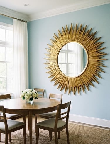 Mirrors are the ultimate dual-purpose decor. While they are functional, a mirror with an ornate, geometric, or sunburst frame serves as a piece of art in its own right. Placing a large statement mirror opposite a window not only decorates the wall but also bounces natural light around the room, making smaller spaces feel significantly larger and airier.