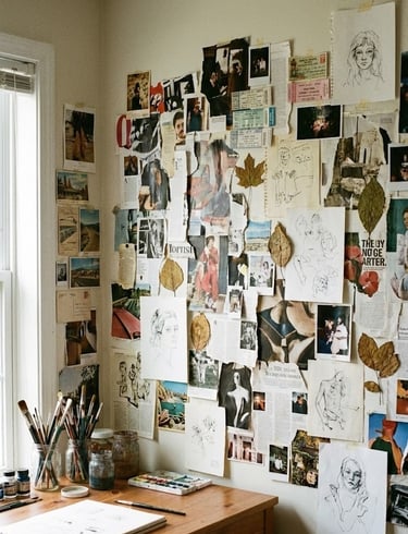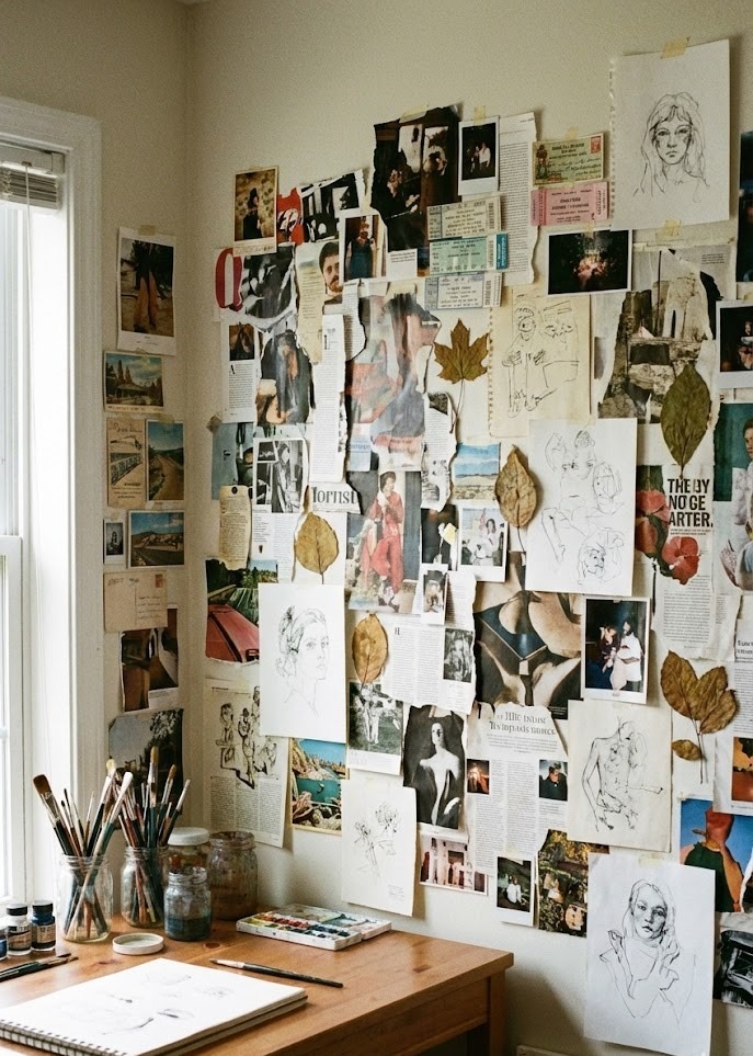 Unleash your inner artist by creating a mixed-media collage. You can combine magazine clippings, postcards, ticket stubs, and sketches to create a raw, expressive display. This works well in creative spaces like studios or teen bedrooms, where the chaotic energy fuels inspiration.