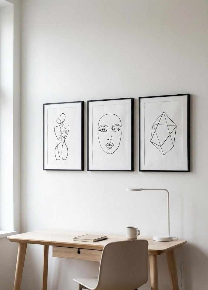 Modern design often relies on the principle of "less is more." Minimalist line art—usually consisting of single continuous lines forming figures or abstract shapes—adds sophistication without overwhelming the eye. These pieces look exceptional in sleek, thin frames and pair well with contemporary furniture.
