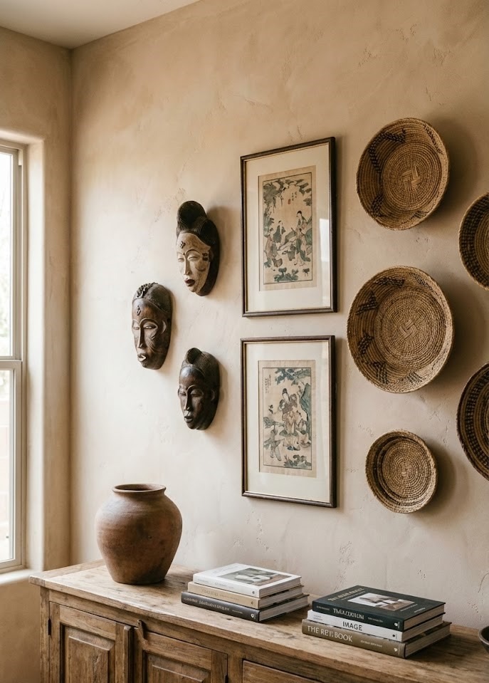 Your home should tell the story of who you are and where you’ve been. Displaying cultural artifacts, such as African masks, Asian silk prints, or woven baskets from South America, adds deep personal meaning and global flair. These items often serve as excellent conversation starters and celebrate the diversity of global craftsmanship.