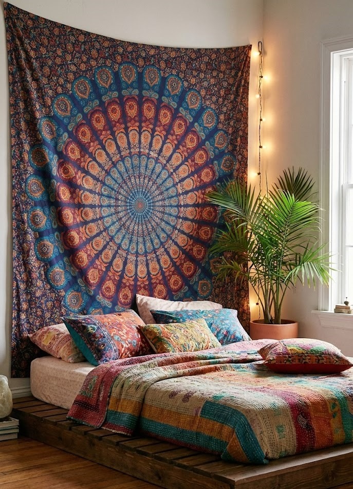 14. Hang Vibrant Tapestries for Bohemian Flair