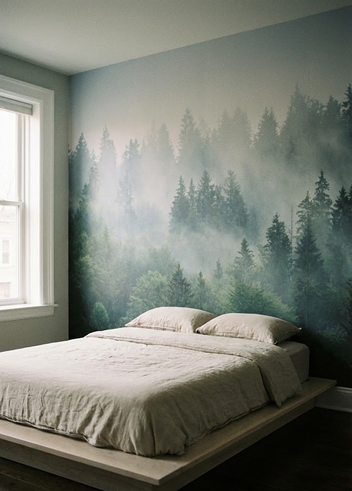 For the ultimate transformation, turn an entire wall into a mural. Whether you hire a local artist to paint a custom scene or use peel-and-stick mural wallpaper, this turns a wall into a massive immersive experience. From misty forests to geometric abstractions, a mural defines the entire mood of the room.