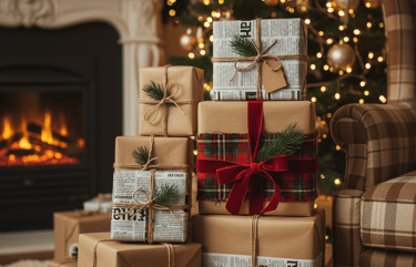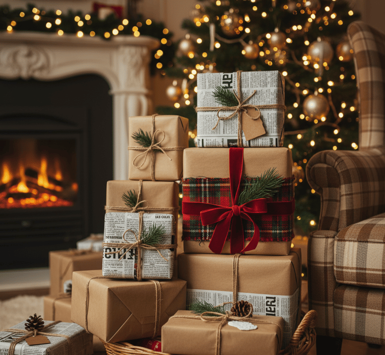 Turn your gift wrapping into part of the decor. Instead of buying expensive, new wrapping paper, use simple brown kraft paper, old newspaper, or even fabric scraps. Tie the packages with twine or a simple ribbon. Add a small, natural accent like a mini pinecone or a sprig of evergreen. Stacking these beautifully rustic gifts under your tree (or in a basket if you have a tree alternative) becomes a lovely decorative feature in itself.