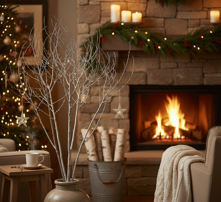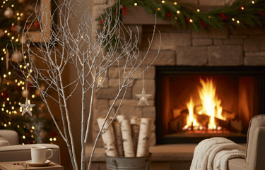 Go beyond pinecones and bring other natural elements into your living room. A tall, bare branch placed in a large vase can serve as a striking, minimalist "tree" for hanging a few select ornaments. A small bundle of birch logs (real or faux) placed near the fireplace can add a rustic, wintery feel. These natural touches add texture and an earthy, peaceful vibe to your holiday setup, costing little to nothing.