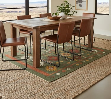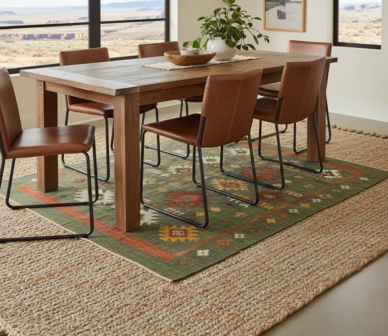 Ground your dining space with a natural fiber rug. Materials like jute, sisal, or wool add essential texture and warmth. You can opt for a simple, neutral-toned rug to complement the room or choose one with a geometric, Native American-inspired pattern to make more of a statement. These materials are often durable, making them a practical choice for a high-traffic area. For an extra layer of visual interest, consider placing a smaller, patterned rug on top of a larger, neutral one.