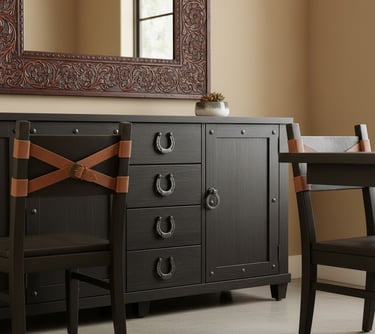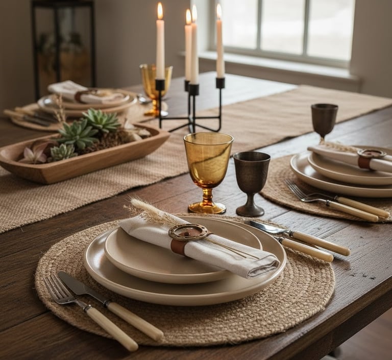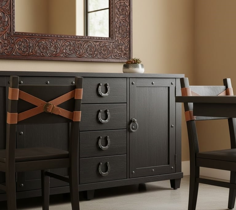 Extend the western theme all the way to your table settings. Look for rustic-yet-elegant elements like heavy stoneware dishes, flatware with handles resembling horn or wood, and placemats made of natural burlap. Simple linen napkins secured with subtle accents, such as small leather ties or metal horseshoe-shaped rings, can add a touch of polish. Mixing materials like wood, metal, and natural fabrics on the table creates a rich, layered look for every meal.