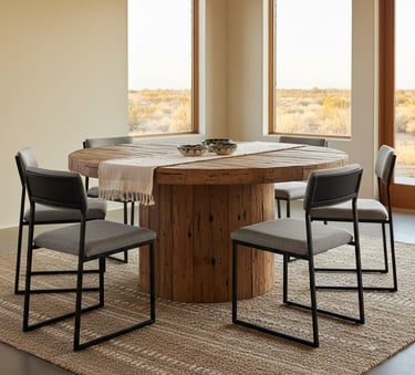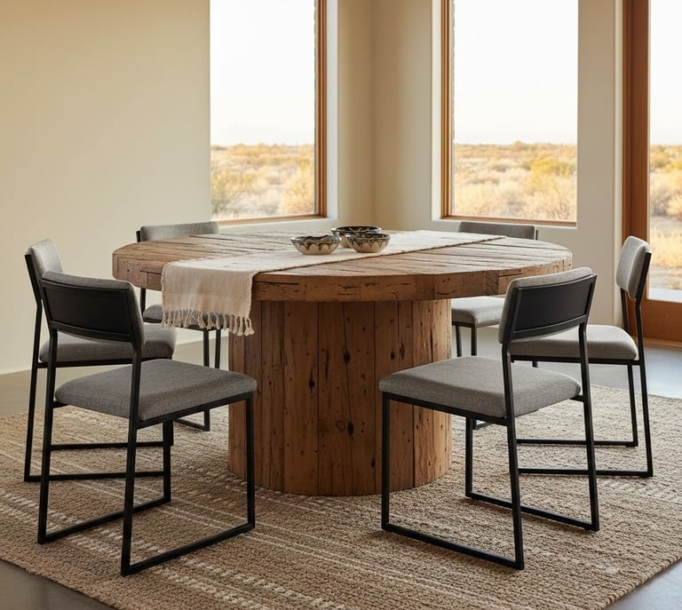 A dining table crafted from reclaimed wood instantly establishes a western aesthetic. The natural, weathered texture of the wood serves as a stunning centerpiece, bringing an element of rustic history into your home. For a modern contrast, try pairing it with minimalist metal or upholstered chairs. If you're working with a smaller area, a round table can promote conversation and keep the space feeling open. Adding a simple linen or burlap runner can complete the look, reinforcing the warm, natural feel of the room.