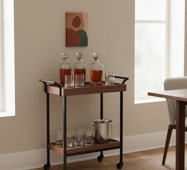 A bar cart can be a sophisticated and functional addition to a modern western dining room. Choose a cart made from materials like dark wood, metal, or a combination of both. Stock it with attractive decanters, your favorite glassware, and perhaps some leather or cowhide coasters. Tucked into a corner, it provides easy access for entertaining guests and adds a touch of modern flair. Style it minimally to maintain an elegant and organized appearance.