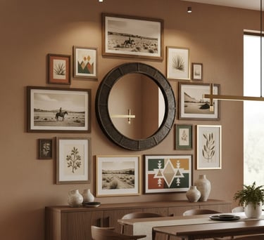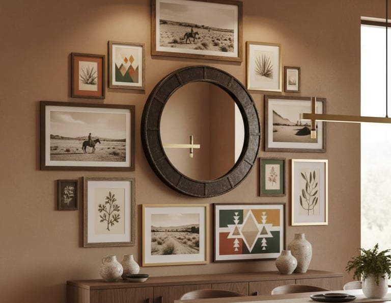 Create a strong focal point with significant wall decor. A large, oversized mirror in a rustic wooden or forged iron frame can make the room feel larger while adding to the theme. Another popular idea is to create a gallery wall featuring landscape photography, botanical prints, or classic cowboy art. Don't be afraid to mix different frame sizes and textures to build visual depth, but try to keep the color palette consistent with the room's earthy tones. In a smaller room, one large, compelling piece of art may be more effective.