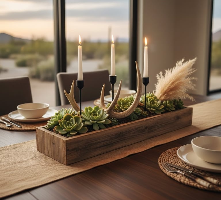 A distinctive centerpiece can tie your whole table together. For a natural, western look, consider arranging items like succulents, shed antlers, or a bundle of dried grasses within a simple wooden box or tray. To add a modern touch, incorporate a few metallic candle holders. This element is easy to change with the seasons; for instance, you could use small pumpkins in the fall and fresh wildflowers in the spring. A simple, low-profile arrangement is often best, as it encourages conversation.