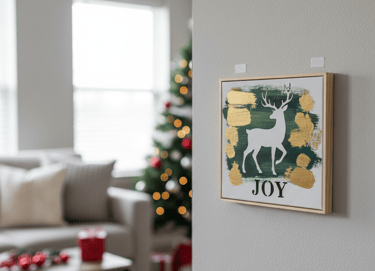 Find a small, inexpensive canvas and use stencils to create holiday designs like snowflakes, reindeer, or a simple "Joy" message. You can also frame a piece of festive scrapbook paper or even a high-quality printout.