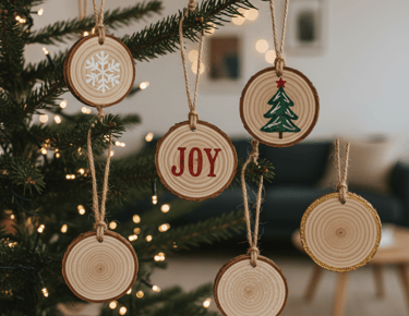 Add a touch of rustic, natural charm to your tree with handmade ornaments made from wood slices. These are lightweight, making them perfect for a mini tree that can't support heavy decorations.