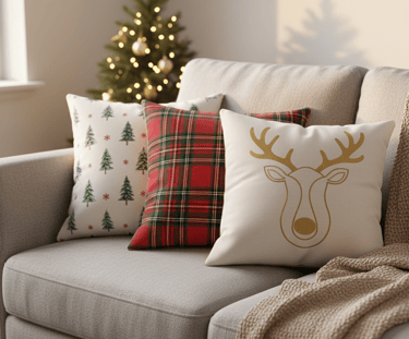 Cut holiday-themed fabric to fit your existing throw pillows. Use iron-on hem tape to create clean edges, then simply slip the new covers over your pillows. You can add extra details like felt appliques.