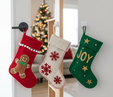 No mantel? No problem. You can still hang stockings with care. Craft your own personalized stockings for a fun, whimsical touch.