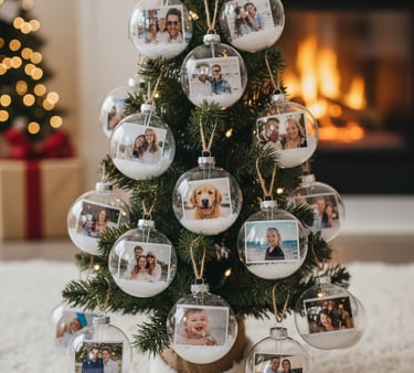 Add a deeply personal and sentimental touch to your holiday decor with photo ornaments. Purchase some clear, fillable ornament baubles.