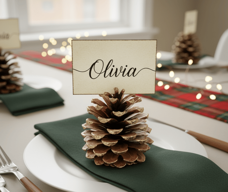 If you're hosting a small holiday meal, these pinecone place card holders add a charming, rustic touch to your table. They are incredibly simple to make.
