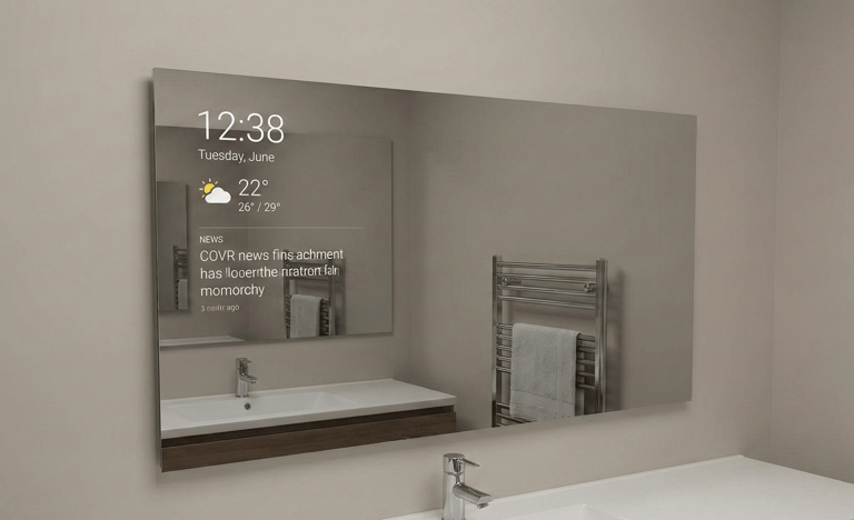 Turn your bathroom or vanity into an information station with a smart mirror. These mirrors have a built-in, transparent display that can show you information like the time, weather, news headlines, or your daily calendar while you get ready for the day. High-end models also double as interactive fitness displays, allowing you to follow guided workouts from a virtual trainer in your own home.
