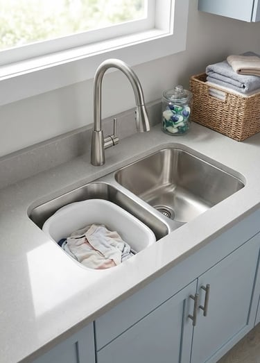 If space allows, a double-bowl sink offers superior functionality. Use one side for soaking stained clothes in bleach or treatment solutions, and keep the other side free for hand-washing or filling the iron. This separation of tasks prevents cross-contamination and speeds up your workflow.