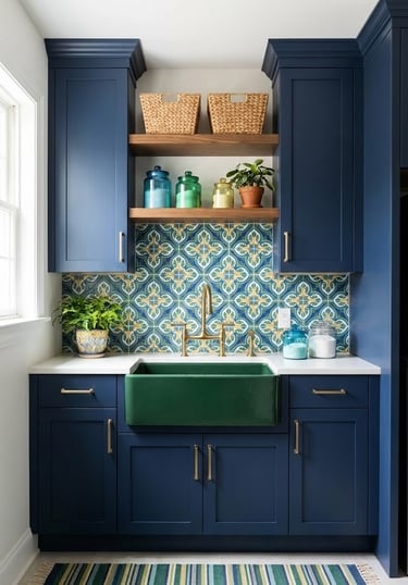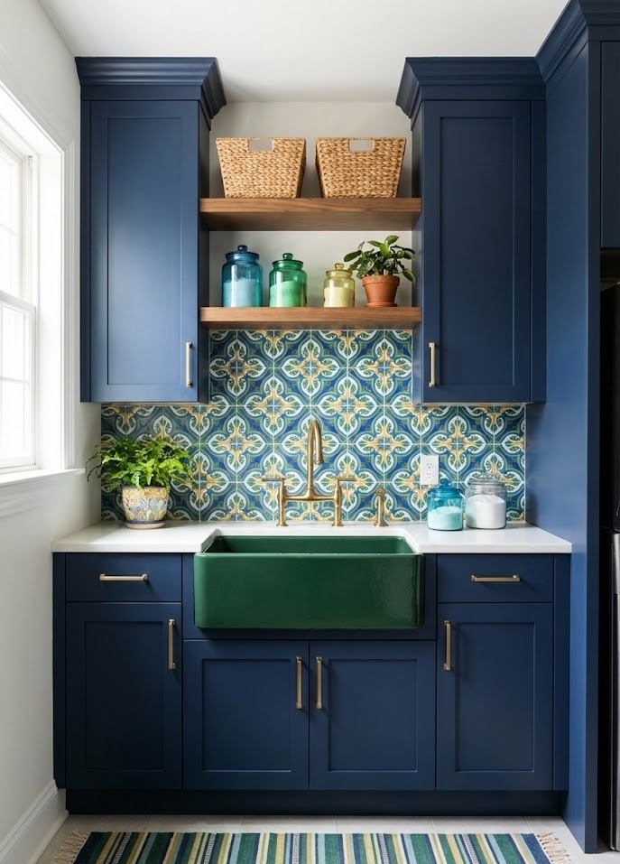 Who says utility sinks have to be white or silver? Inject energy into the room by choosing a sink in a bold color like navy blue, forest green, or even blush pink. Alternatively, keep the sink neutral but surround it with vibrant cabinetry or a colorful tiled backsplash. This pop of personality serves as a focal point, balancing soft neutrals and making the room feel like a creative studio rather than a chore zone.