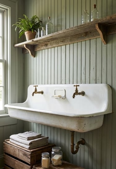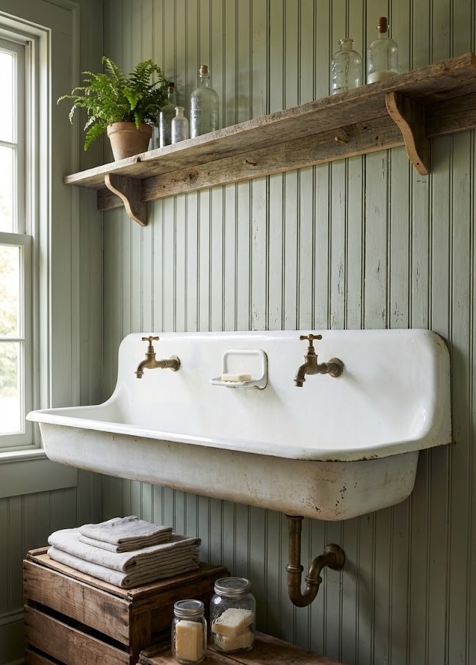 Channel a nostalgic schoolhouse or factory vibe with a wall-mounted cast iron trough sink. These high-back sinks usually feature integrated soap dishes and wall-mounted faucets. They are incredibly durable and act as a stunning focal point in a rustic or eclectic laundry room. Refinished antique versions offer unmatched character that modern replicas struggle to duplicate.