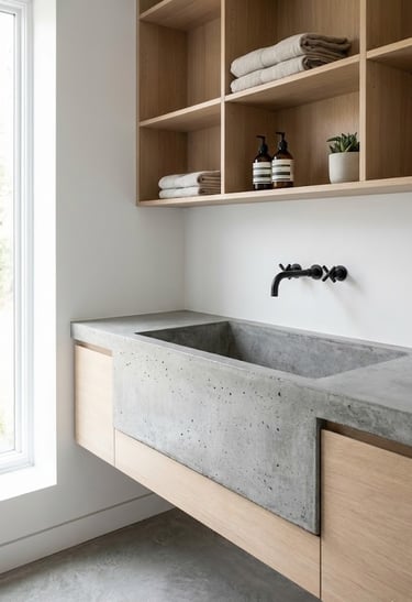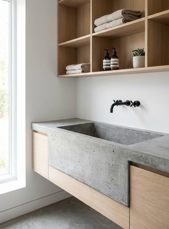 Concrete is the darling of modern industrial design. A custom-cast concrete sink can be made to any size or depth, offering complete customization. Its raw, industrial texture works well with matte black fixtures and open wood shelving. Ensure it is properly sealed to prevent staining from laundry detergents.