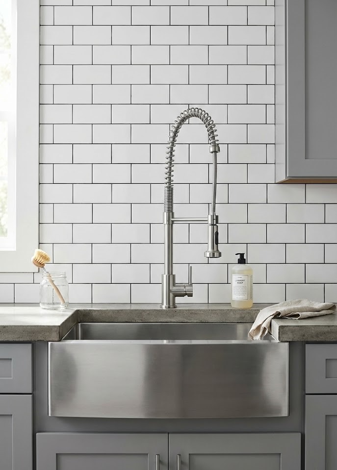 The sink is only half the equation; the faucet dictates the function. Pair your basin with a high-arc, commercial-style faucet with a pull-down sprayer. The height allows you to fill tall buckets effortlessly, while the sprayer makes cleaning the corners of a large basin—or rinsing out muddy shoes—a breeze.