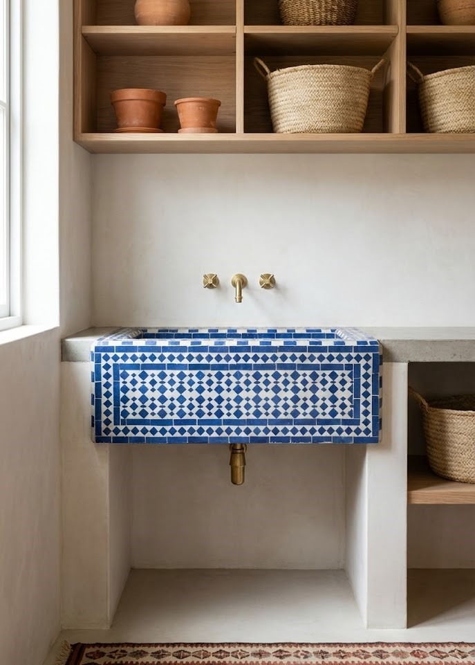 For a truly custom look, consider a built-in basin clad in mosaic or subway tiles. This allows you to match the sink perfectly to your backsplash or floor. While it requires expert installation to ensure it is watertight, a tiled sink is a unique architectural feature that adds a Mediterranean or Moroccan flair to the space.