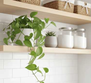 Add life and fresh air to your laundry room. A few potted plants or a trailing vine on a high shelf can make the chore feel much more pleasant.