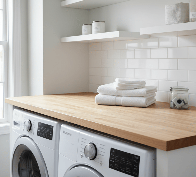 This is a must-have. Install a smooth countertop over your front-load machines or under a set of shelves. This gives you a clear, ample surface to fold clothes immediately.